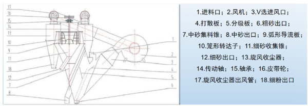 第三步:采用人工砂石風選復合式脫粉機,集篩分風選于一體,將物料分為粗細不同的砂和粉,工藝簡約,節能環保。