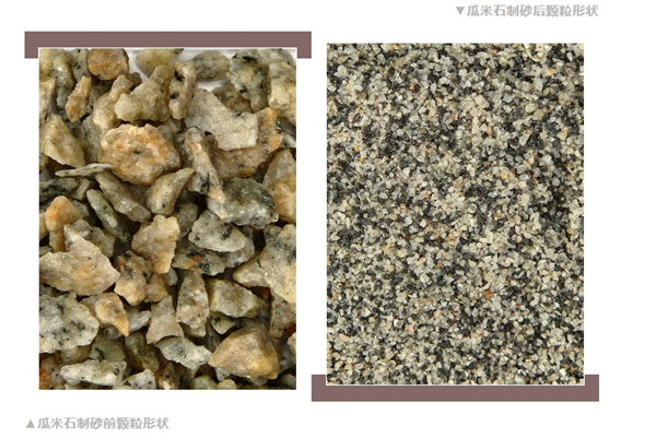 瓜米石又稱石沫、石粉、豆石,因品相與瓜子片相像,顆粒小而又常見于針片狀、扁平狀存在,粒型特別差,所以限制了其使用領域,給骨料銷售帶來困難,時常于低價格或者廢棄料處置。