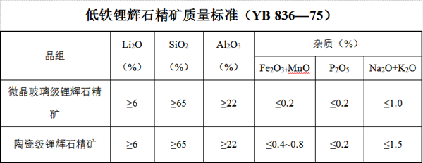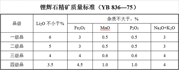 (2)按化學成分鋰輝石精礦分為四級,以干礦品位計算。