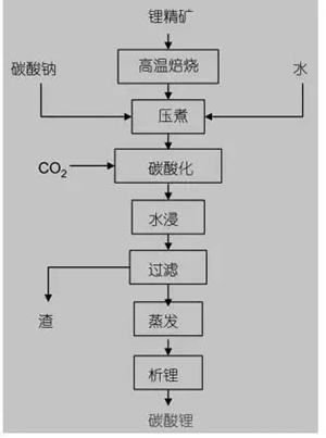 優點:實用性很強,幾乎可用于所有鋰礦物,缺點是浸出液中鋰含量低,蒸發能耗大,鋰回收率較低。