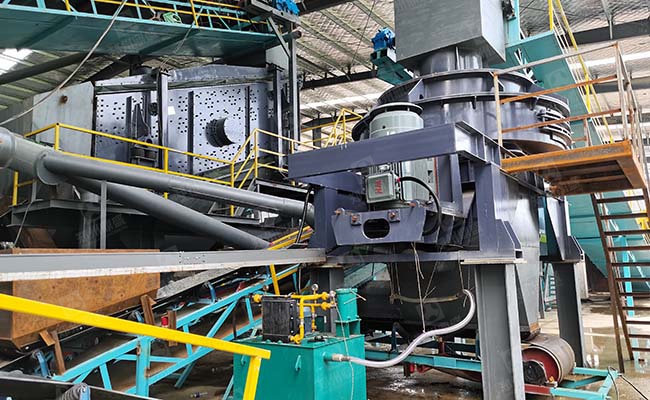 配置二:給料機(jī)+顎破+圓錐破+振動(dòng)篩+制砂機(jī)+洗砂機(jī)+輸送機(jī)