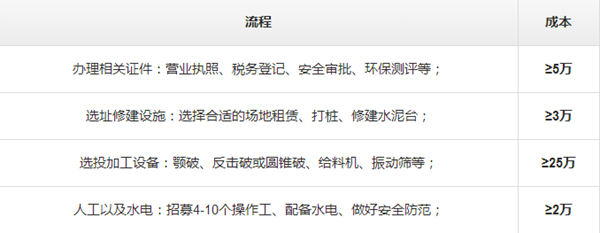 以上是從市場統計數據分析得來的開辦石料廠流程與需要的成本,總計約需要35萬以上的投資成本,不同的規模、產量需求決定了不同的成本,如果您想獲取更詳細的專屬石子加工廠每噸成本、方案分析,可點擊在線咨詢 ,由廠家專業人員在線為您解答。
