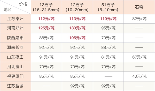 通過下面的表格可以看出大部分地區13、12、05石子的價格都在每噸80元左右,陜西西安的甚至都超百元了!側面也體現了砂石需求量有多高,便于計算我們就按照每噸80元好了;然后是石子加工廠每噸成本—原料、人工、水電以及其他總約為40元,則加工一噸石子的利潤為40元每噸(含稅費)!