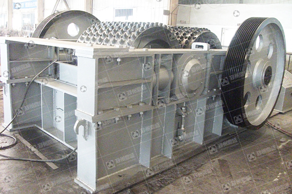 雙齒輥式破碎機由傳動裝置、機架部分、破碎輥、液壓推力裝置、聯動機構組成,兩輥輪之間裝有楔形或墊片調節裝置,楔形裝置的頂端裝有調整螺栓,當調整螺栓將楔塊向上拉起時,楔塊將活動輥輪頂離固定輪,即兩輥輪間隙變大,出料粒度變大,當楔塊向下時,活動輥輪在壓緊彈簧(或壓緊油缸)的作用下兩輪間隙變小,出料粒度變小。墊片裝置是通過增減墊片的數量或厚薄來調節出料粒度大小的,當增加墊片時兩輥輪間隙變大,當減少墊片時兩輥輪間隙變小,出料粒度變小。