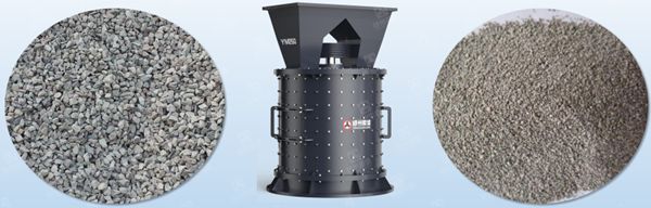2、采用預磨機獨特的“鐵打石”、“石打鐵”原理,將小粒徑、低動能物料高效粉碎,粒型圓潤,成砂率高;