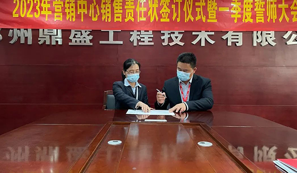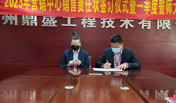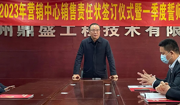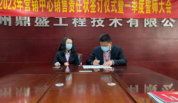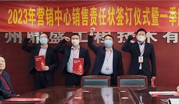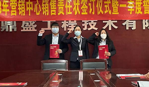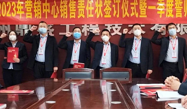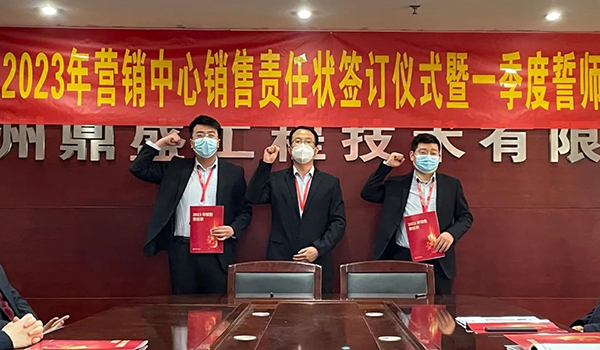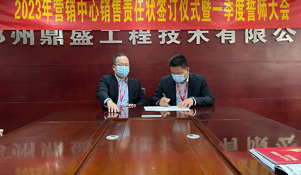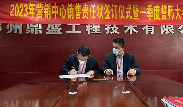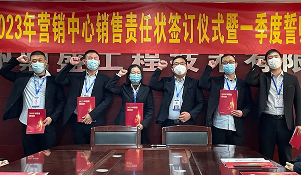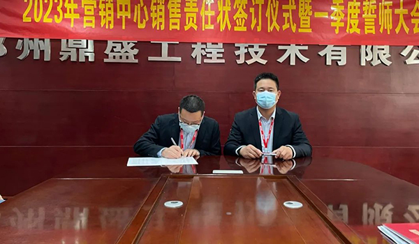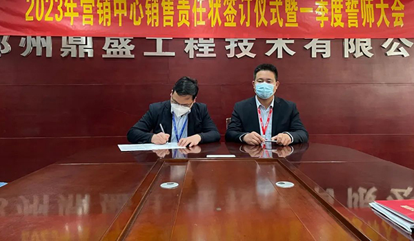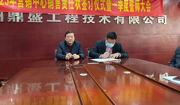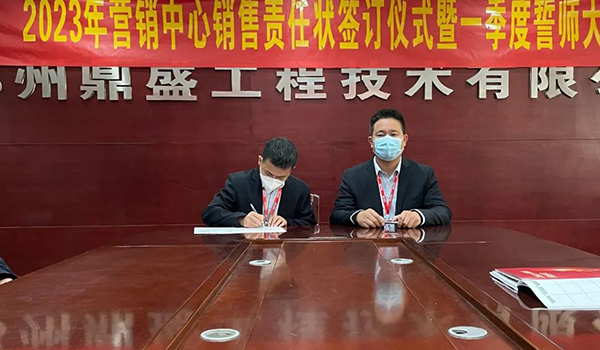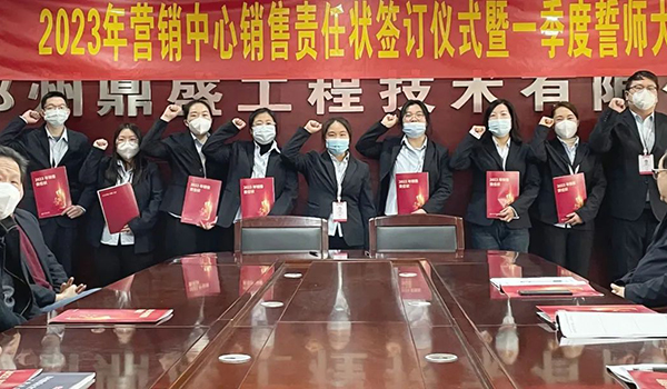 蓄力量、育希望、創輝煌。近日,鄭州鼎盛為確保2023年度銷售工作取得突破性進展,再上一個新臺階。營銷中心全體齊聚公司總部,舉行“2023年營銷中心銷售責任狀簽訂儀式暨一季度誓師大會”,公司主要領導出席儀式。