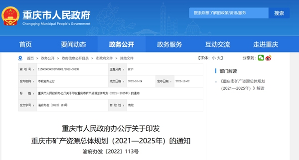 重慶市礦產資源總體規劃(2021—2025年)