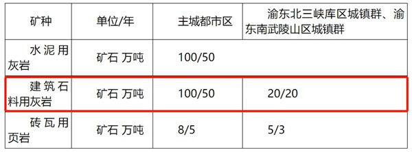 合理控制石灰巖礦山生產規模下限和上限,引導支持石灰巖礦山規模化開采、集約化利用、生態化發展,有力有效保障經濟社會發展和民生建設對砂石資源的剛性需求。按照主城都市區、渝東北三峽庫區城鎮群、渝東南武陵山區城鎮群等3個區域,區分新設、已設采礦權整合擴能或者增劃資源等2種類型,充分考慮渝東北三峽庫區城鎮群、渝東南武陵山區城鎮群偏遠地區量小但不可或缺的民生需求,科學設置石灰巖礦山生產規模準入條件。
