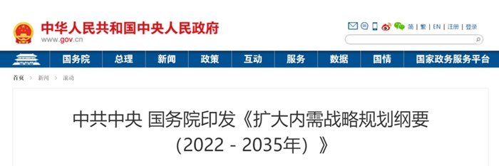 《綱要》指出,堅定實施擴大內需戰略、培育完整內需體系,是加快構建以國內大循環為主體、國內國際雙循環相互促進的新發展格局的必然選擇,是促進我國長遠發展和長治久安的戰略決策。
