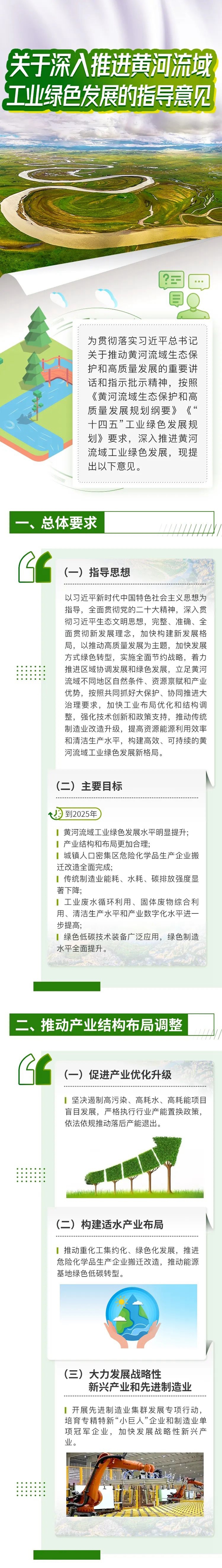 為貫徹落實習近平總書記關于推動黃河流域生態保護和高質量發展的重要講話和指示批示精神,按照《黃河流域生態保護和高質量發展規劃綱要》《“十四五”工業綠色發展規劃》要求,深入推進黃河流域工業綠色發展,現提出以下意見。