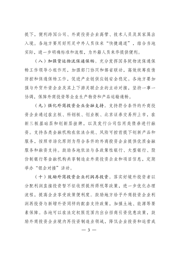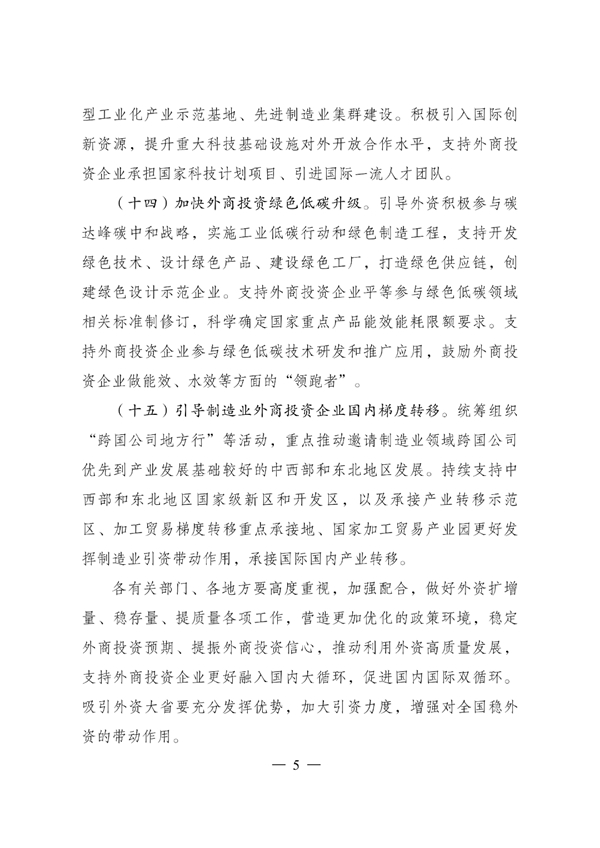 《關于以制造業為重點促進外資擴增量穩存量提質量的若干政策措施》已經國務院同意,現印發給你們,請認真組織實施。