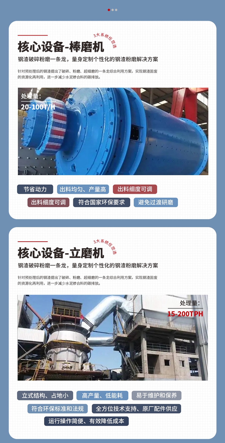 針對預處理后的鋼渣提出了破碎、粉磨、超細磨的一條龍綜合利用方案,實現鋼渣固廢的資源化再利用,進一步減少水泥摻合料的碳排放。